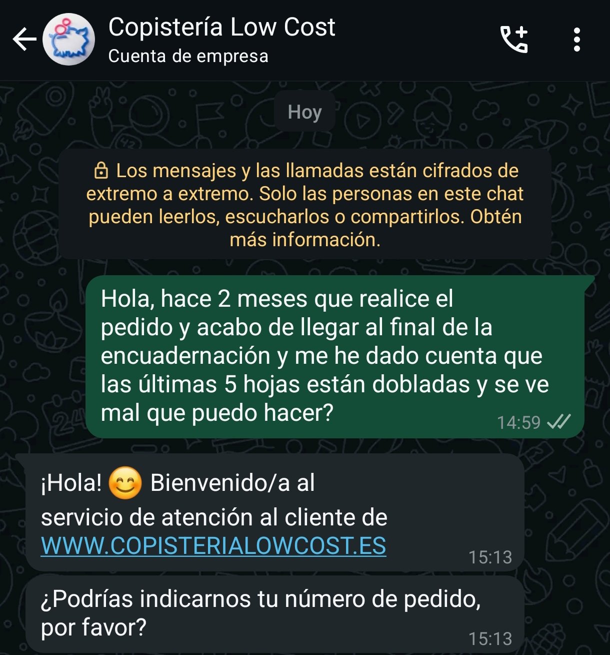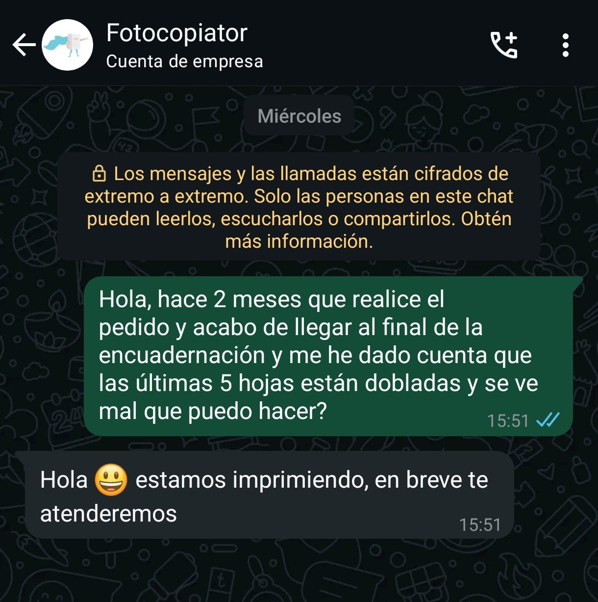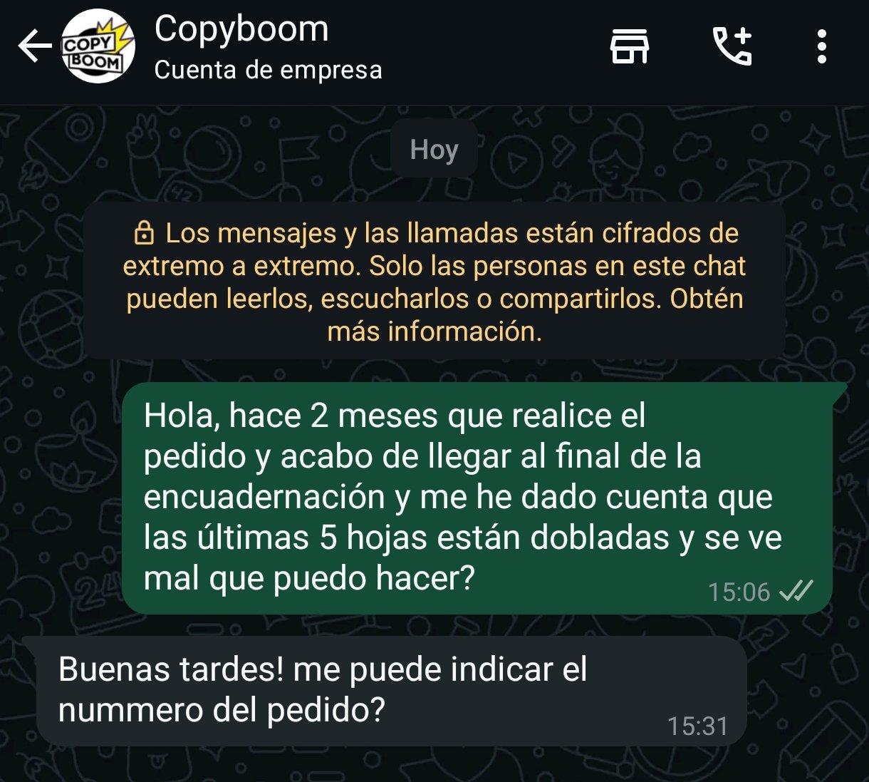 El servicio al cliente es otro punto fuerte de Wecopy, Apapel, Don Folio, Copyfly y Tufotocopiaonline.es, con respuestas en menos de 5 minutos. En cambio, Iris Copy no permite enviar formularios de contact0 (se queda pillado), y Fotocopiator no respondió, lo que los coloca en desventaja. Además, Copyfly tiene condiciones de compra estrictas que pueden ser problemáticas, como la imposibilidad de recuperar el dinero en la tarjeta si se rehace un pedido.