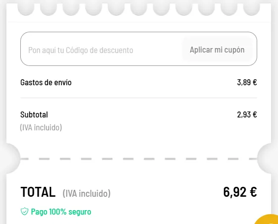 | Nuestro Rating | Nombre | Tiempo de entrega | Mínimo para envío gratis | Ecológico | Incidencias | Precio blanco y negro | Precio con descuento | Cupón descuento |